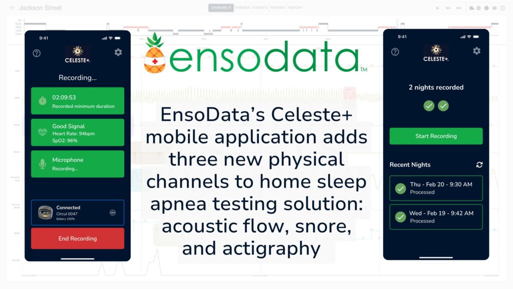 EnsoData’s Celeste+ mobile application adds three new physical channels to home sleep apnea testing solution: acoustic flow, snore, and actigraphy