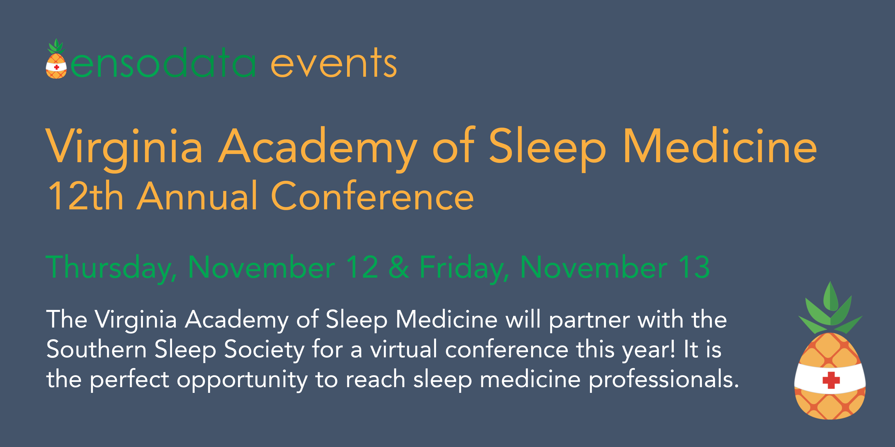The Virginia Academy of Sleep Medicine (VASM) helps educate clinicians and the public about the importance of sleep and sleep disorders to improve the health of Virginians. The VASM is hosting their annual conference – virtually this year – on November 12th and 13th, and it is the perfect opportunity to reach sleep medicine professionals far and wide!